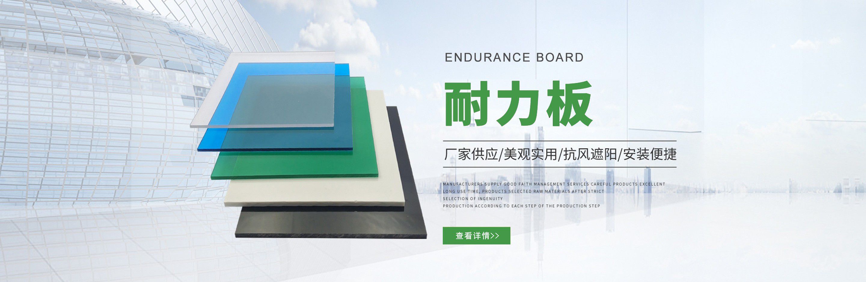 聊城市沐金塑膠有限公司注冊資金2180萬元,占地20000余平方,擁有自建廠房15000平方,員工100余名。10余年來,公司主營耐力板,鎖扣耐力板,耐力板深加工,無動力通風器,組合雨搭,PVC硬脂板,耐力板廠家等板材的發展戰略,逐漸成長為綜合性企業。 公司擁有多條板材共擠生產線,采用世界知名品牌進口原材料和先進工藝,依據完善的ISO9001質量管理體系和ISO14001環境管理體系,為產品的卓越品質提供了強有力的保證。憑借過硬的創新能力和堅實的硬件基礎,贏創已成為國內領先的熱塑性板材生產商,產品被廣泛應用于建筑業、農業、工業、廣告業、安防行業及DIY領域。 公司始終致力于通過提供最優的板材應用解決方案,為客戶創造最高的價值;堅守創新、質量、靈活、服務和速度的核心價值觀;堅持“完美的產品需要完美服務的支持”的經營理念,努力實現成為世界領先的板材與解決方案供應商的夢想。 在未來,公司將立足客戶需求,不斷改變和完善現有產品,拓展產品線和充分開發板材的應用領域,為客戶創造全方位的價值。同時更好地實現員工的價值,實現公司團隊的價值。我們將與您一起創贏未來! 企業使命:成為世界領先的板材與解決方案供應商?! 」驹妇埃和ㄟ^提供最優的板材應用解決方案,為客戶創造最高的價值?! 『诵膬r值觀:質量...